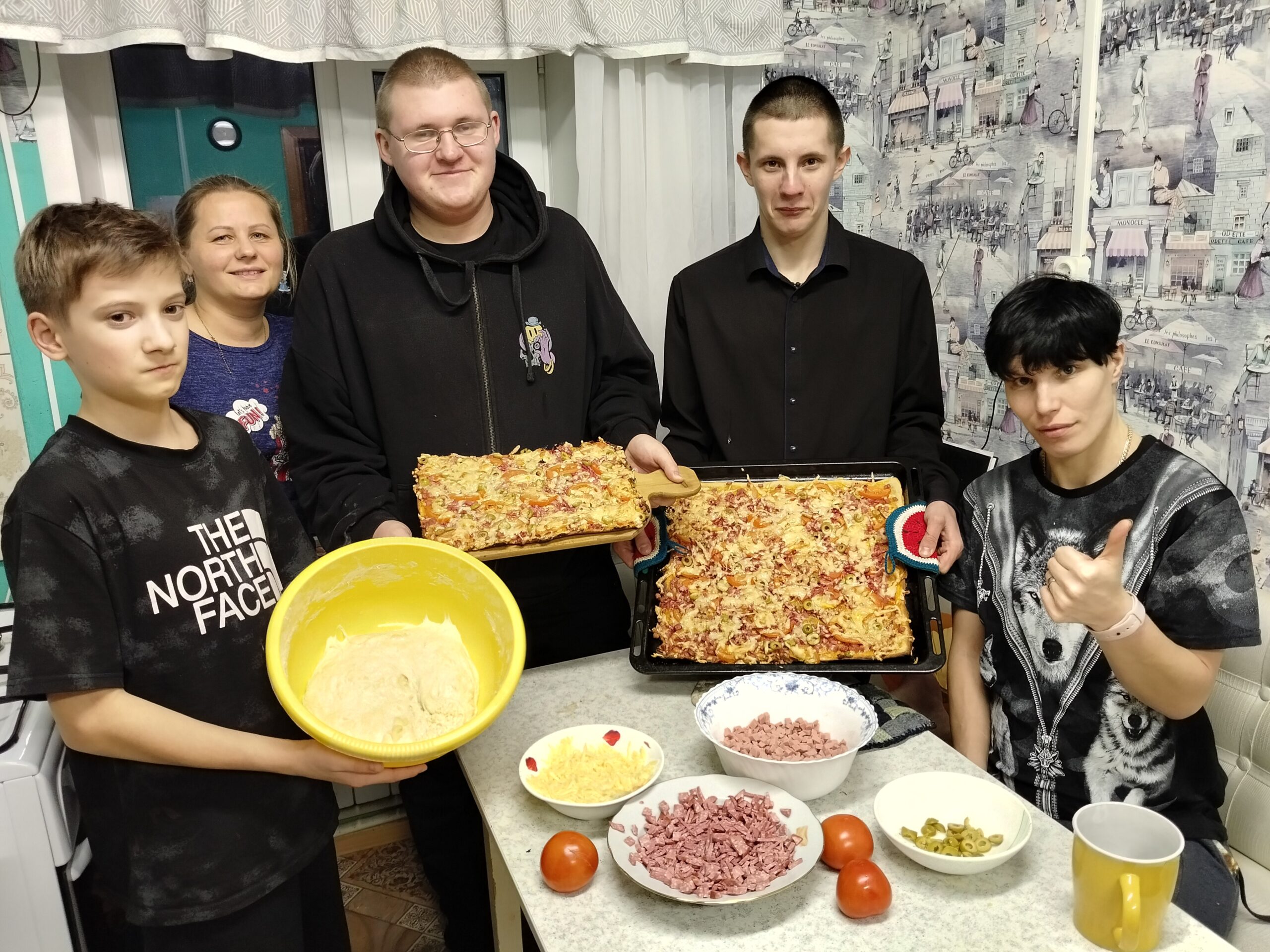 Готовили пиццу весь вечер, а съели всё за час! Полностью согласны с ребятами из Кирова — пиццы много не бывает.