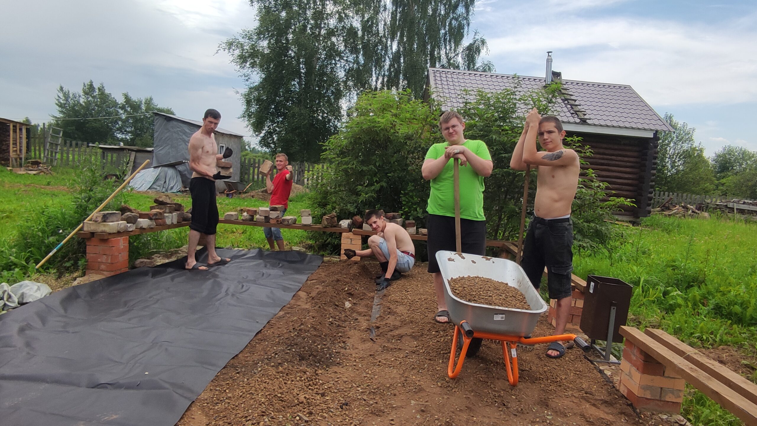 У нас есть место для костра, и мужская половина участников программы «Дача» решила привести его в порядок, сделав уютным и безопасным.