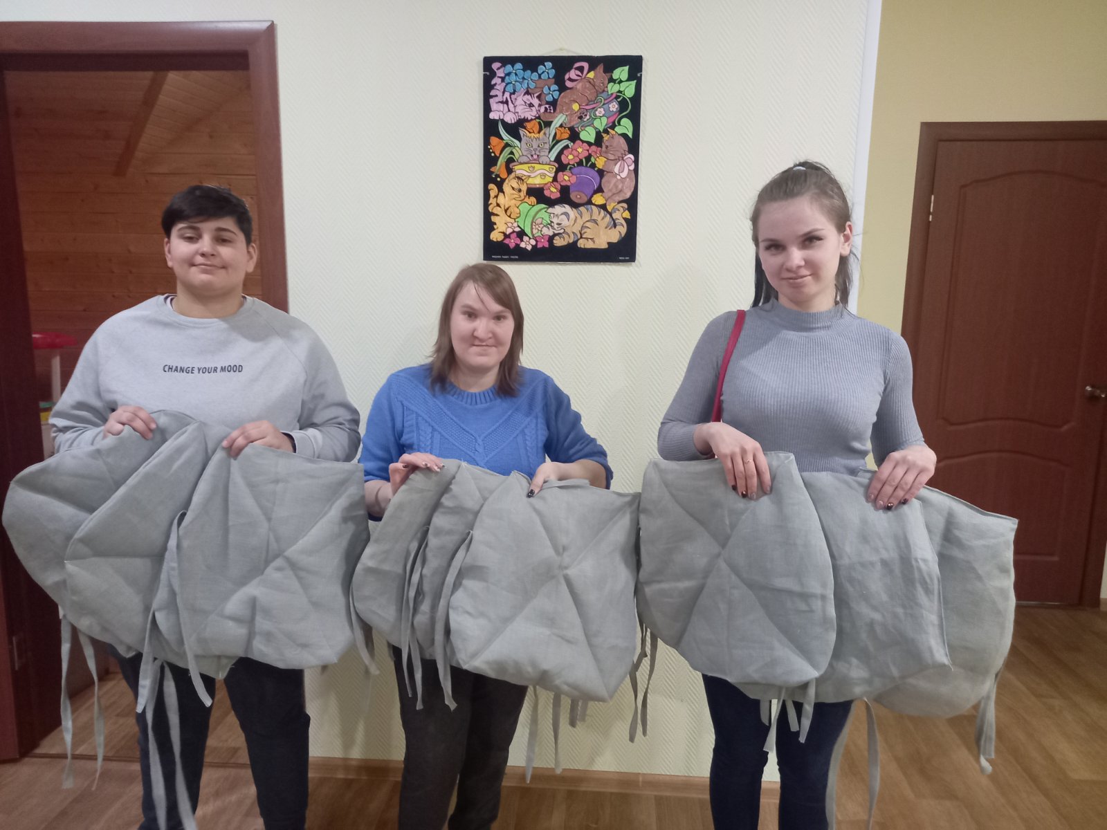 Для воспитанников в детском доме купили красивые новые стулья, а наши девушки сшили для них мягкие сиденья, которые не только сохранят красоту самих стульев, но и сделают их более удобными для ребят. Воспитанники и сотрудники детского дома остались очень довольны нашей работой и поблагодарили участников волонтерской акции.