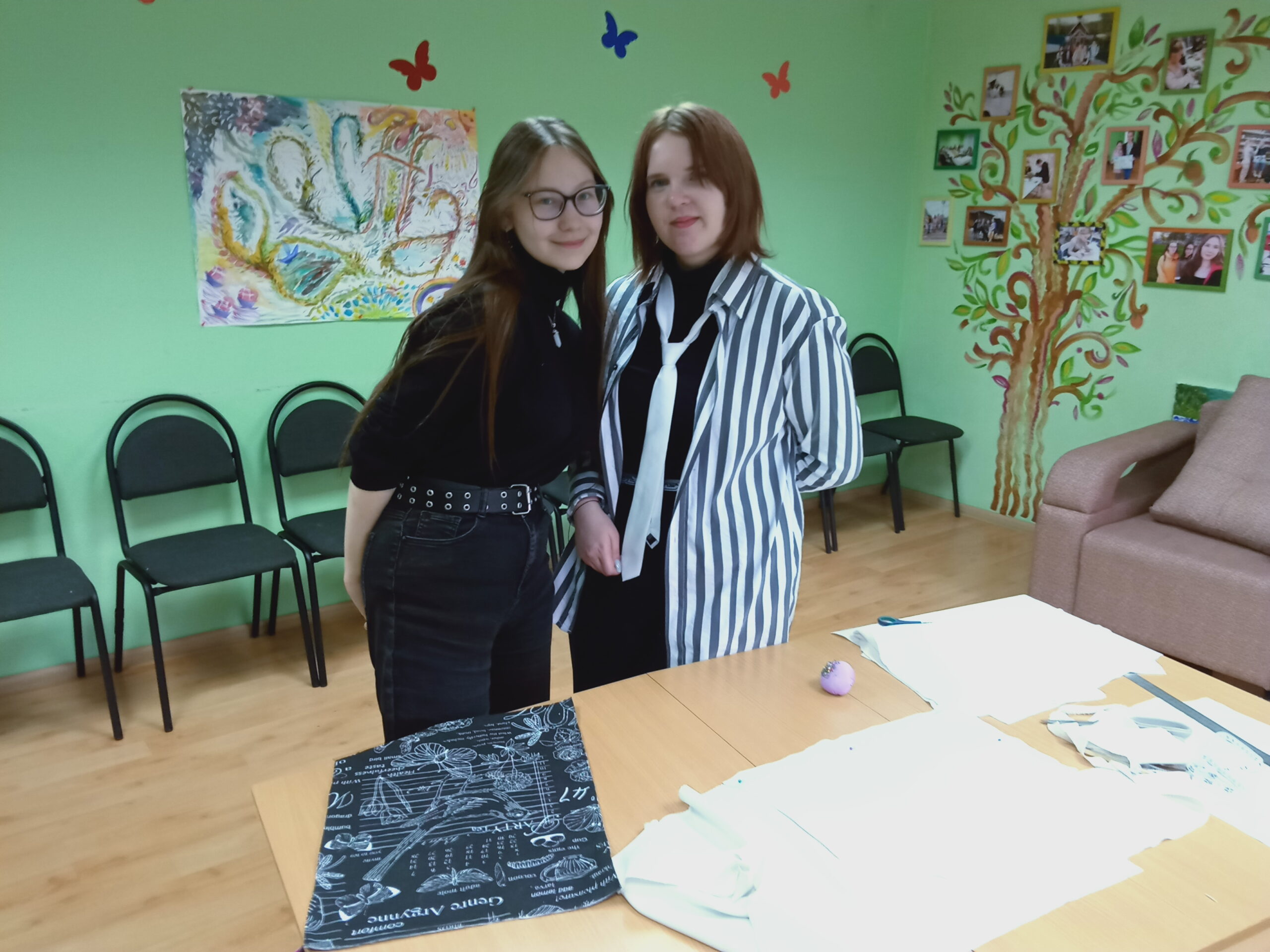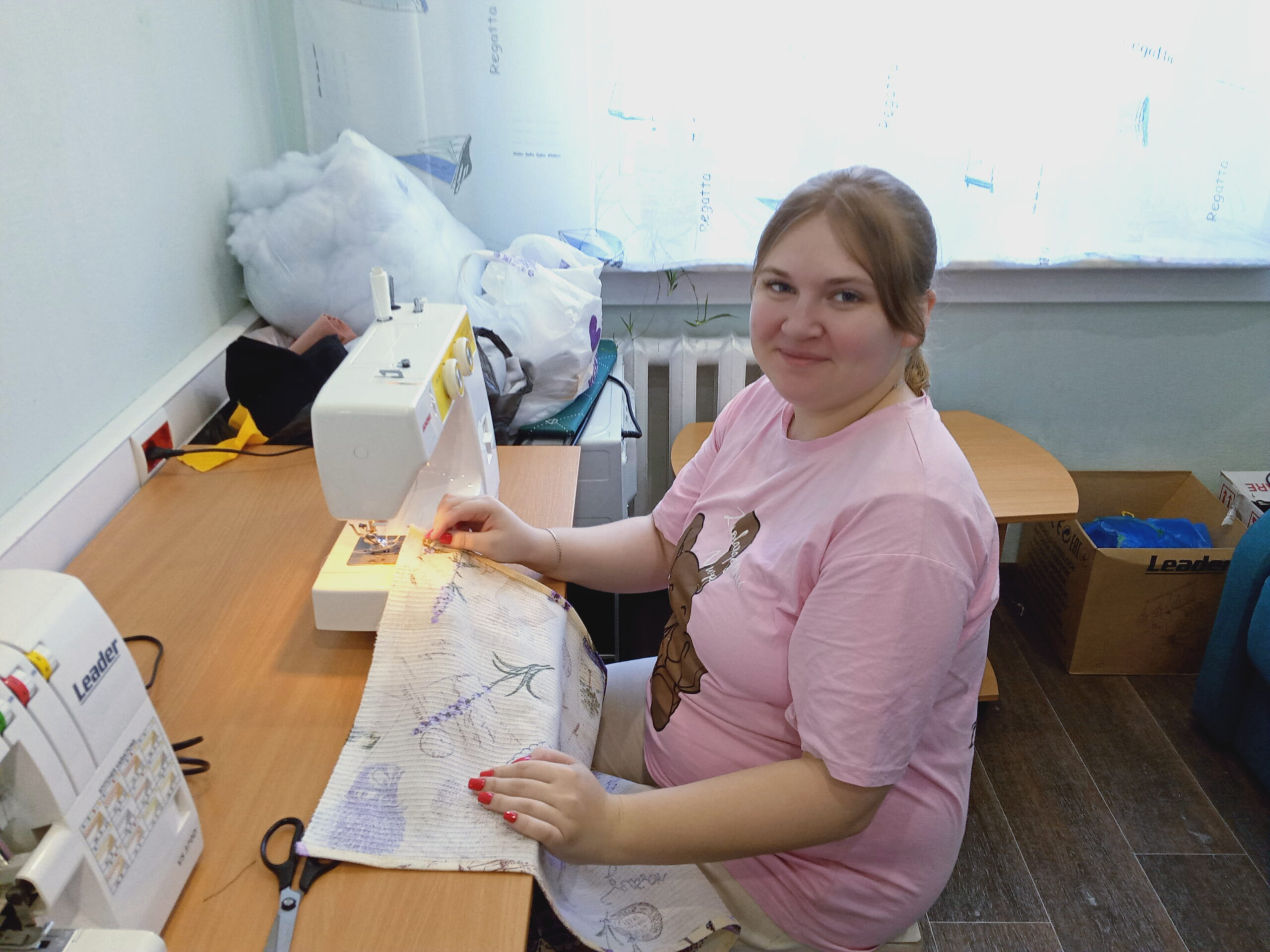 Дарина Д., Рита К. и Алина П. сшили сумки – шоперы. Кристина К. раскроила и начала шить футболку для себя. Во время Масленичной недели Анастасия Д. и Кристина К. сшили 4 полотенца для инвалидов – подопечных приюта «БлагоДать». Самой активной оказалась Анастасия Д., мамочка из семейной программы. Она отремонтировала 2 куртки, сшила 2 подушки для своих детей и сшила пижамные штаны для мужа.