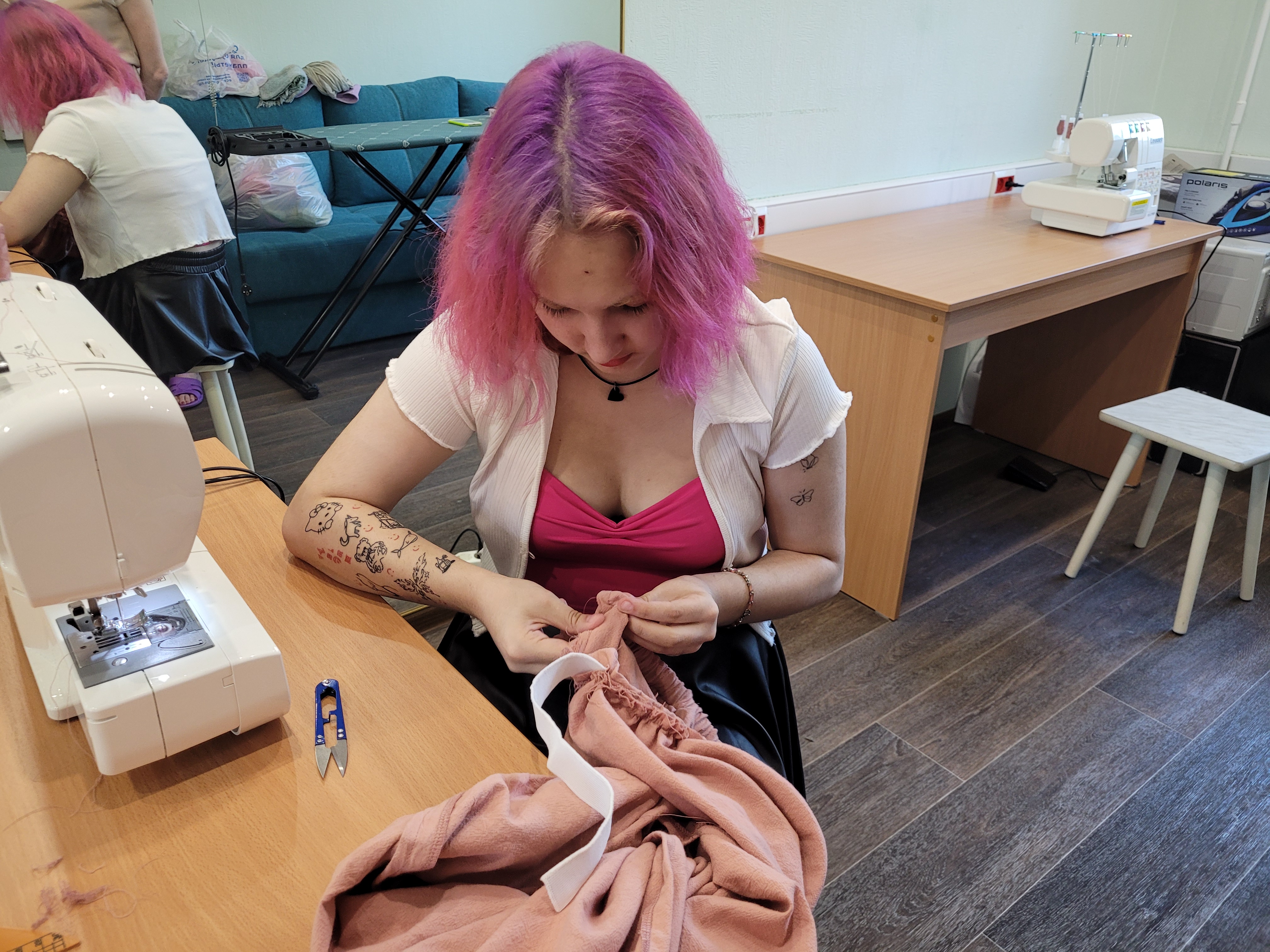 4 августа в Центре поддержки выпускников юные мастерицы вновь удивили нас своими способностями к рукоделию. Элина Г. мечтала о летней юбке в пол, и теперь её гардероб пополнился новой модной обновкой. Другая участница — молодая мама Милена М. оказалась прирождённой швеёй, ведь изготовление домашних шортиков заняло у неё не больше получаса.