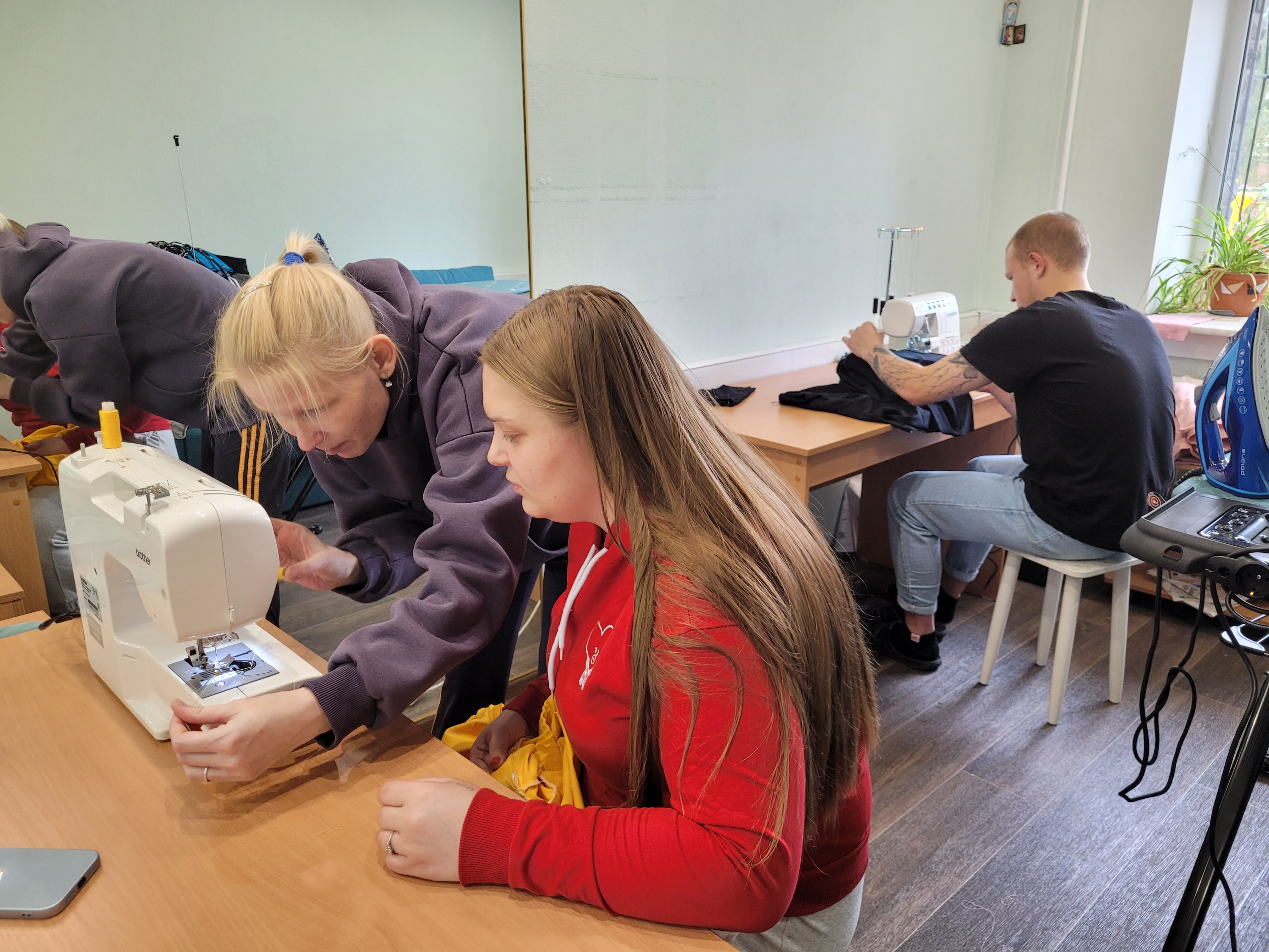 В этот же вечер Тамара П. обрезала и подшила новые брюки, а Милена М. закончила шить летние шорты. Наша наставница Елена очень гордится своими учениками и уверена, что они справятся и с более сложными изделиями.