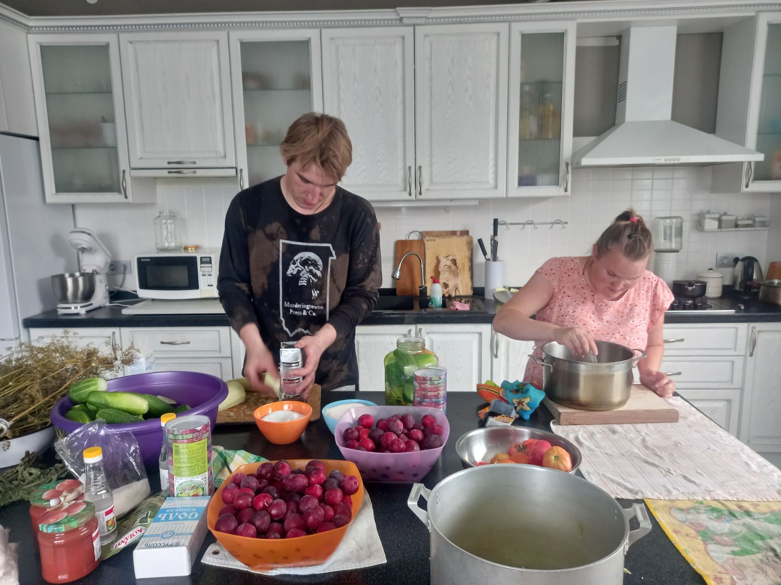 Но все мы знаем, что вырастить урожай — это дело первое, а второе — его переработать, сделать заготовки на зиму. Вот и приходят наши выпускники в фонд, чтобы помочь нам запастись на зиму маринованными огурчиками, кабачковой игрой, компотами, овощными заправками. А заодно и получить новые практические навыки. Ведь в жизни все может пригодиться!