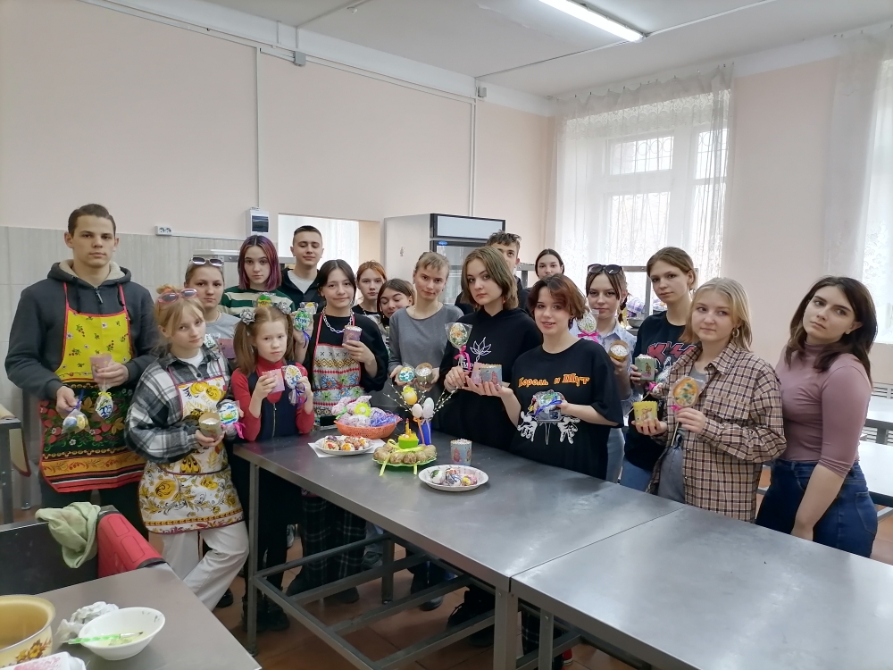 Куличи готовили в специально оборудованной кухне — лаборатории колледжа. Замесили тесто, затем разложили его в специальные капсулы для куличей и поставили их печь в духовку. В процессе встречи ребята узнали историю Великого Праздника — Пасхи.