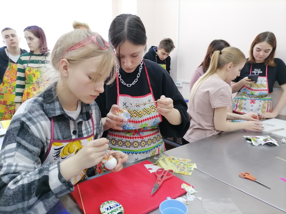 покраски яиц. В мастерской царила домашняя обстановка, все были заняты делом, каждому хотелось, чтоб его изделие было самым красивым, самым лучшим, самым вкусным.