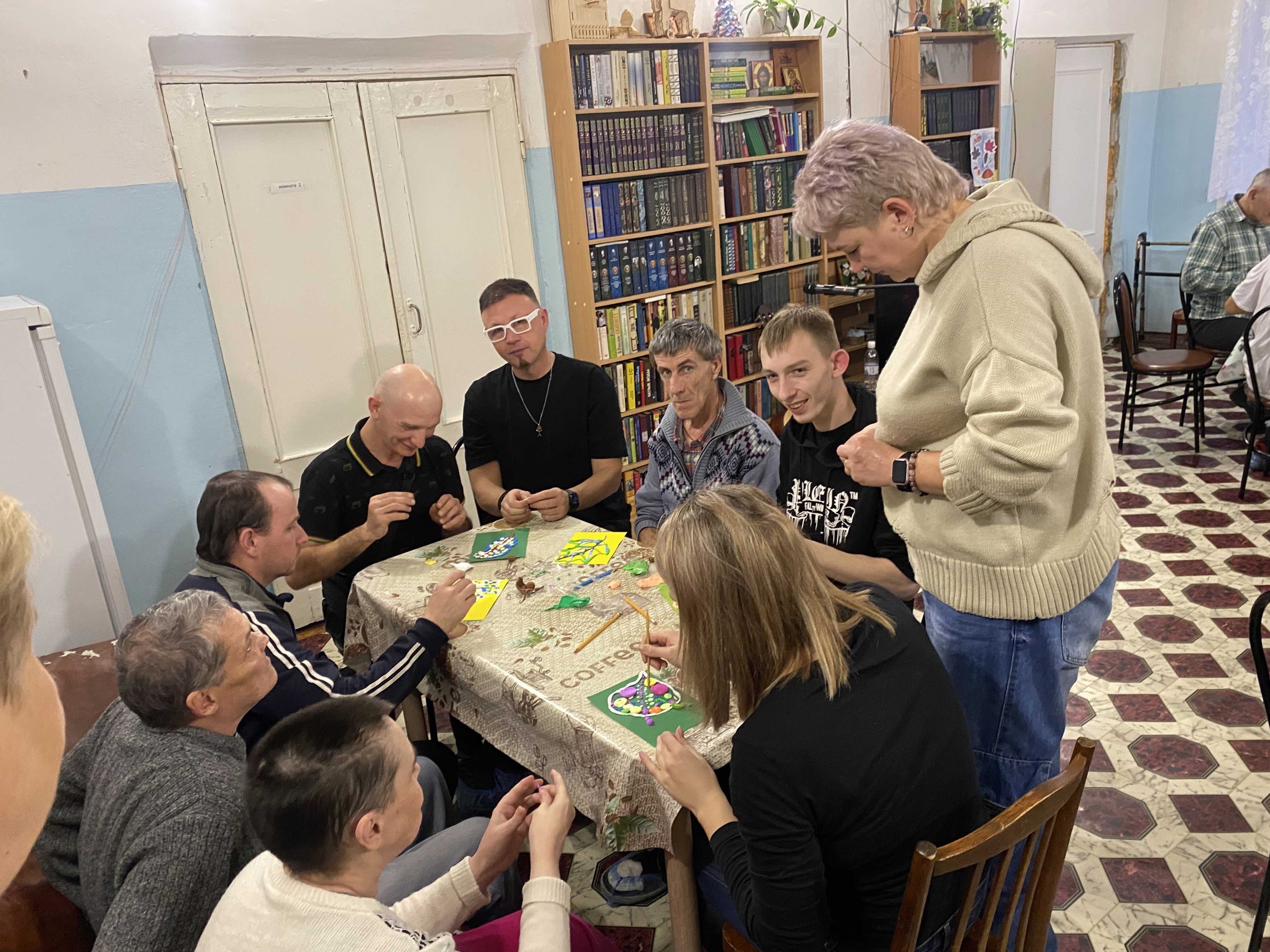 Традиционная поездка в гости к бабушкам и дедушкам в Дом милосердия им. Бирюкова в октябре – это песни под гитару Андреем Гусевым и рукоделиями от Центра помощи детям «Детский дом №1». В результате получилась красочная гирлянда с разноцветными листьями.