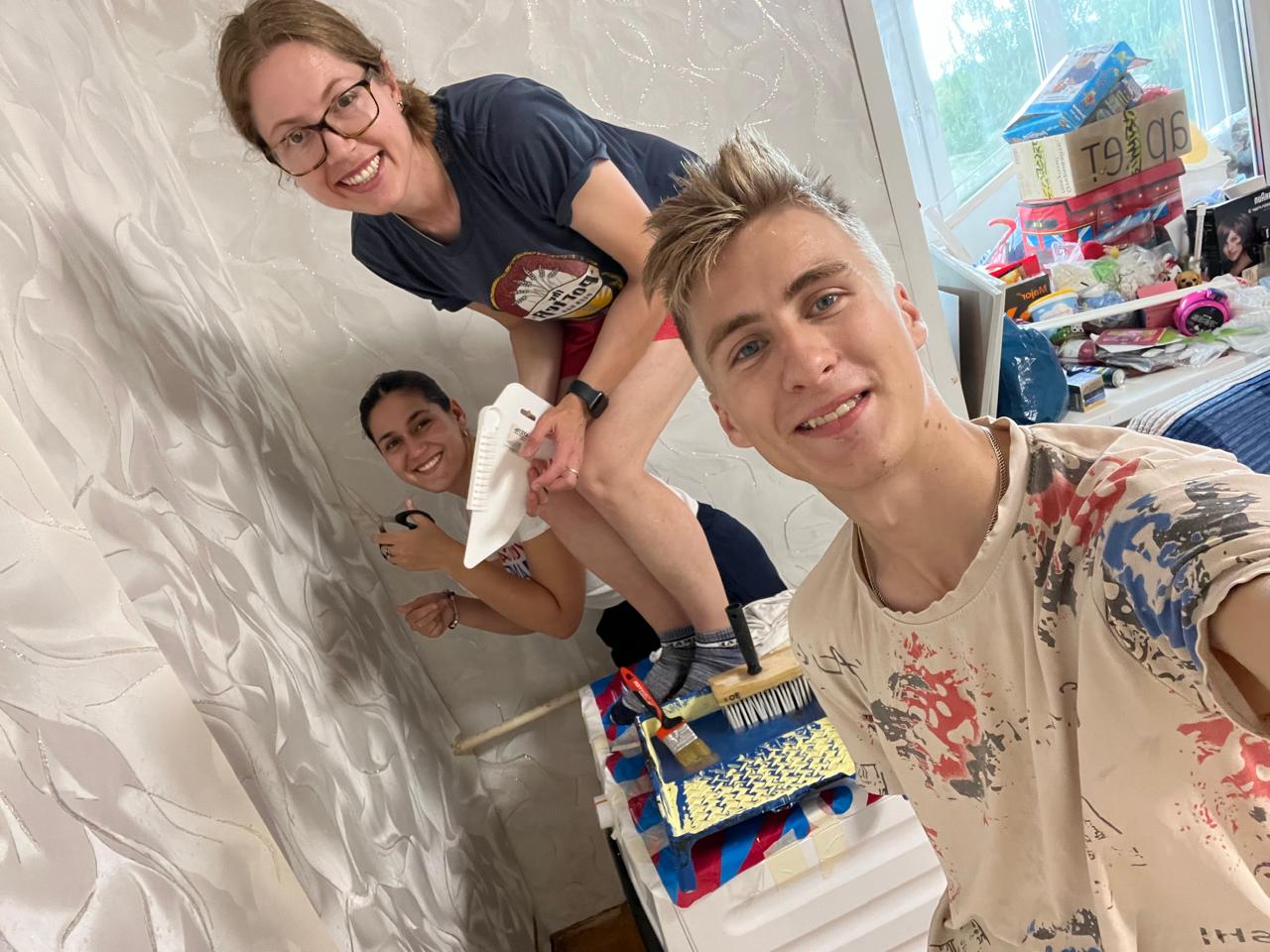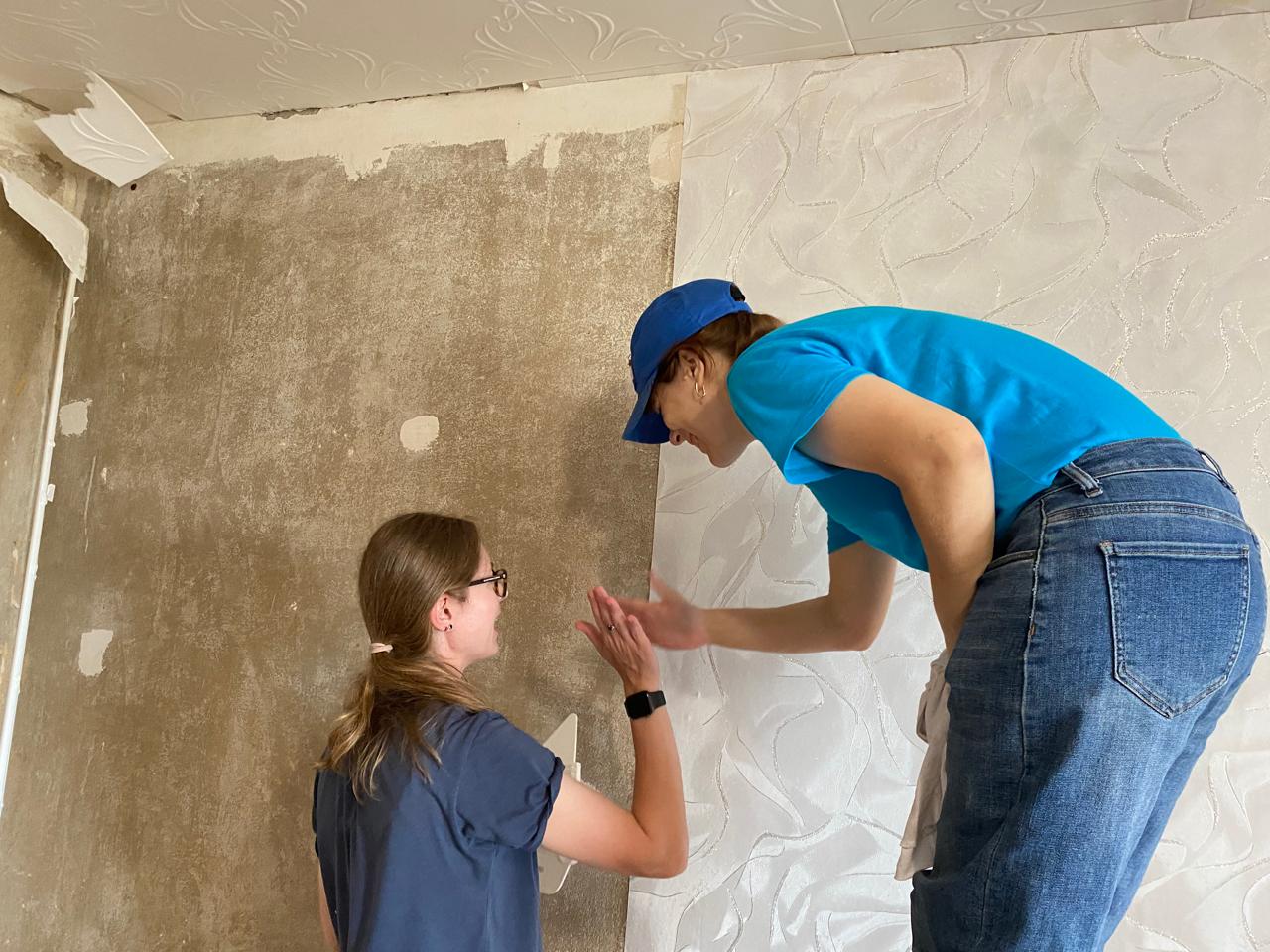 На этот раз мы, наша команда волонтёров-ремонтёров, сделали косметический ремонт в комнате участницы нашей программы «Поддержка молодых семей».