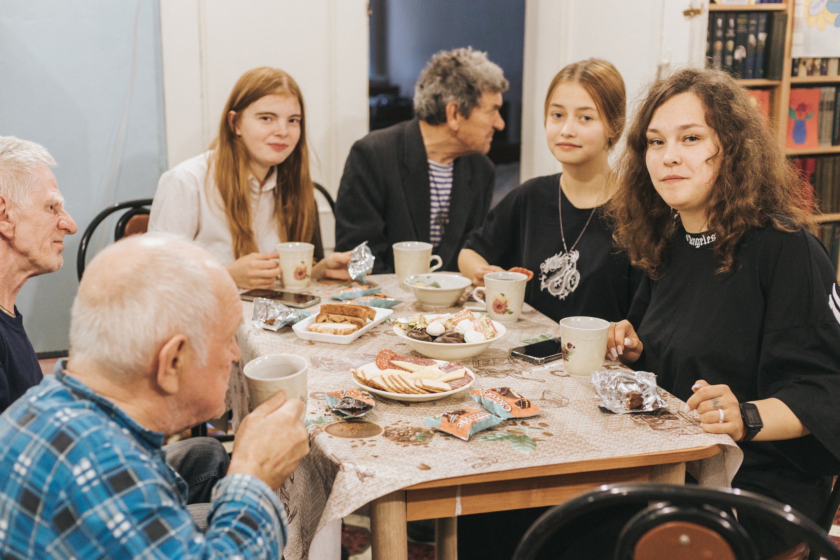 «Мне нравится, что в этих поездках можно почувствовать взаимоотношения между старшим и младшим поколением. Нравится, что приезжаем с какой-то программой, а еще что пьем вместе чай» — Артем, волонтер.
