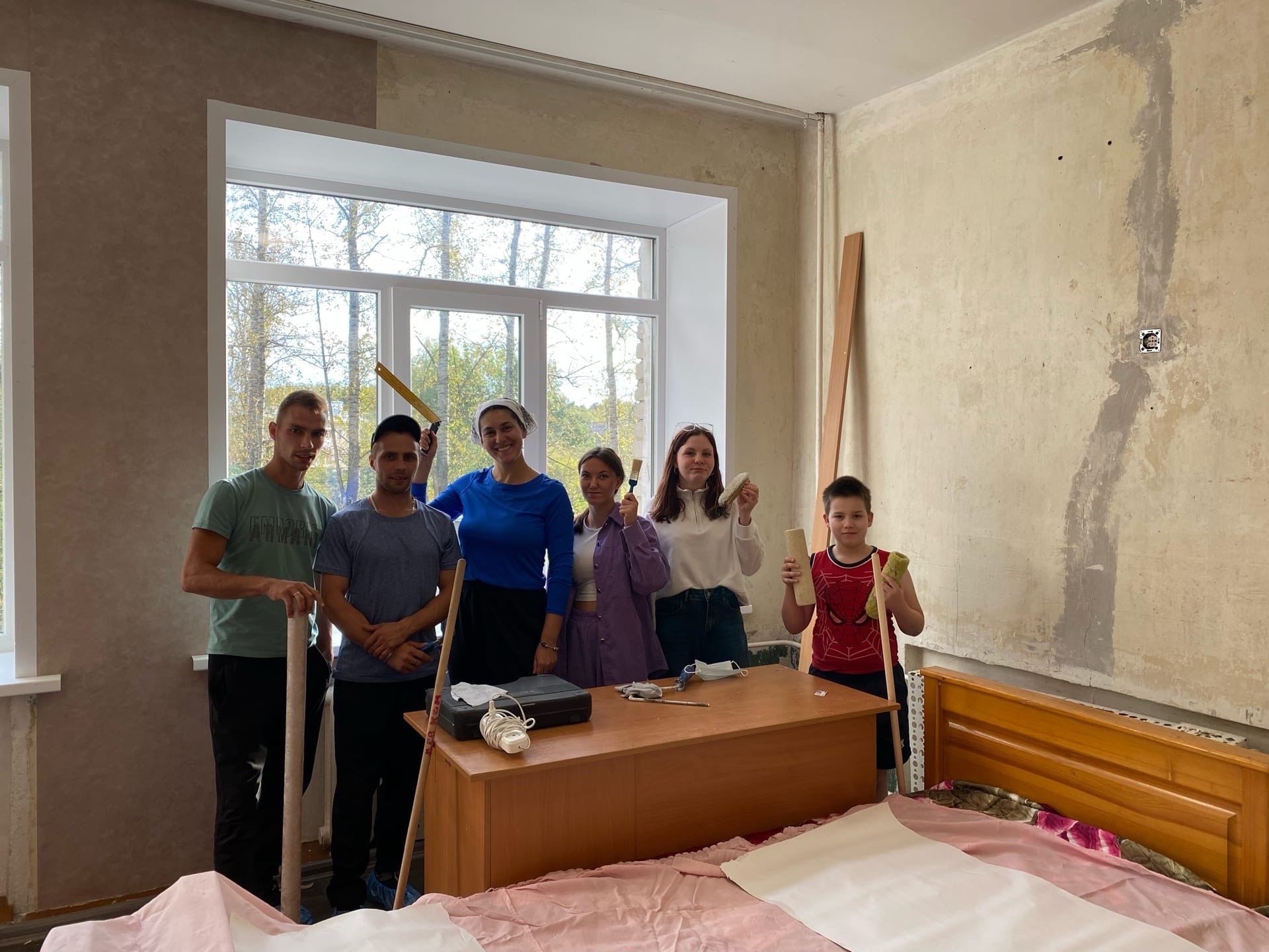 «Наши наставники – большие молодцы. Благодаря их опыту мы полностью оклеили довольно большую комнату за один день, включая подготовку. Очень радостно, что на них можно положиться в таких проектах. А еще здорово, что они могут научить сотрудников фонда и молодежь делать ремонт своими руками и рассказать о профессии», – Мария, куратор.