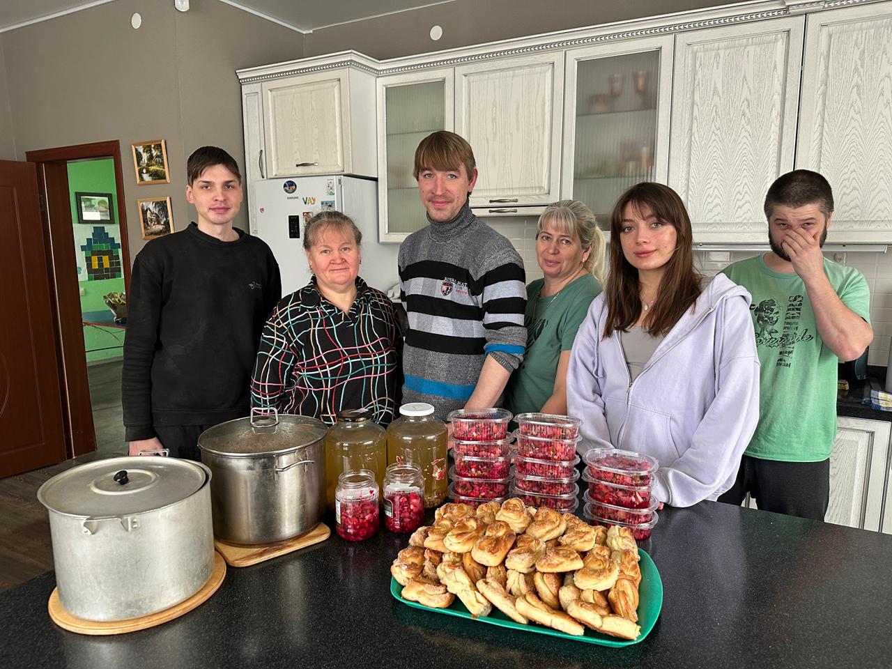 Несмотря на то, что сейчас пост, они приготовили традиционные блюда — макароны и гречку с тушёнкой. Ведь наши благополучатели не всегда могут позволить себе сытный обед, а наши ребята постарались сделать их рацион более разнообразным и вкусным, добавив винегрет и постные плюшки с компотом из ягод.
