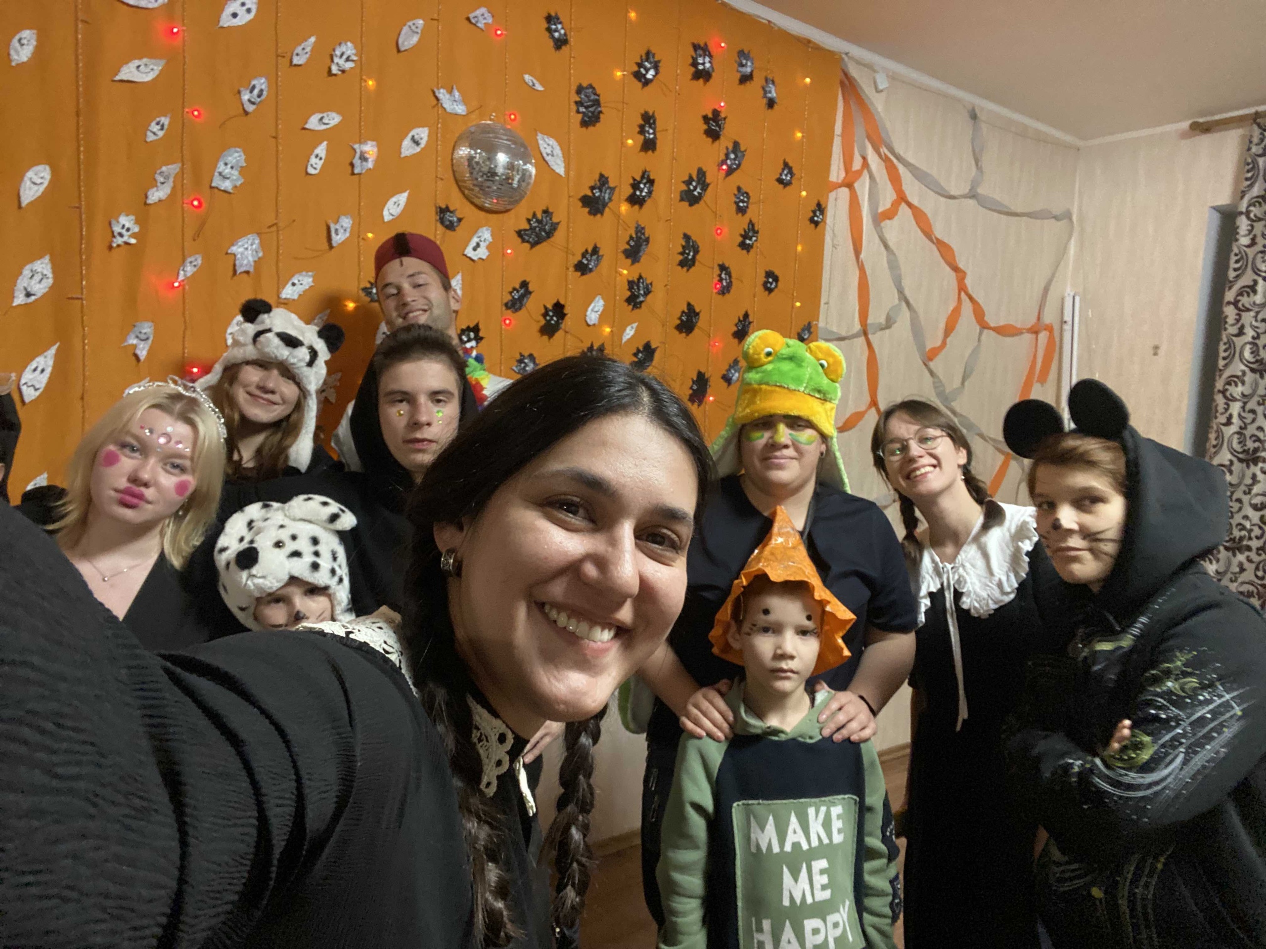 Настроение тут же поменяло вектор на новогоднее. Но сегодня мы вспоминаем, как весь октябрь мы готовились и наращивали осеннее настроение: делали украшения из листьев и разрисовывали тыквы. А на маскараде мы, конечно, наряжались, соревновались в конкурсах и пили чай с праздничными пирогами!
