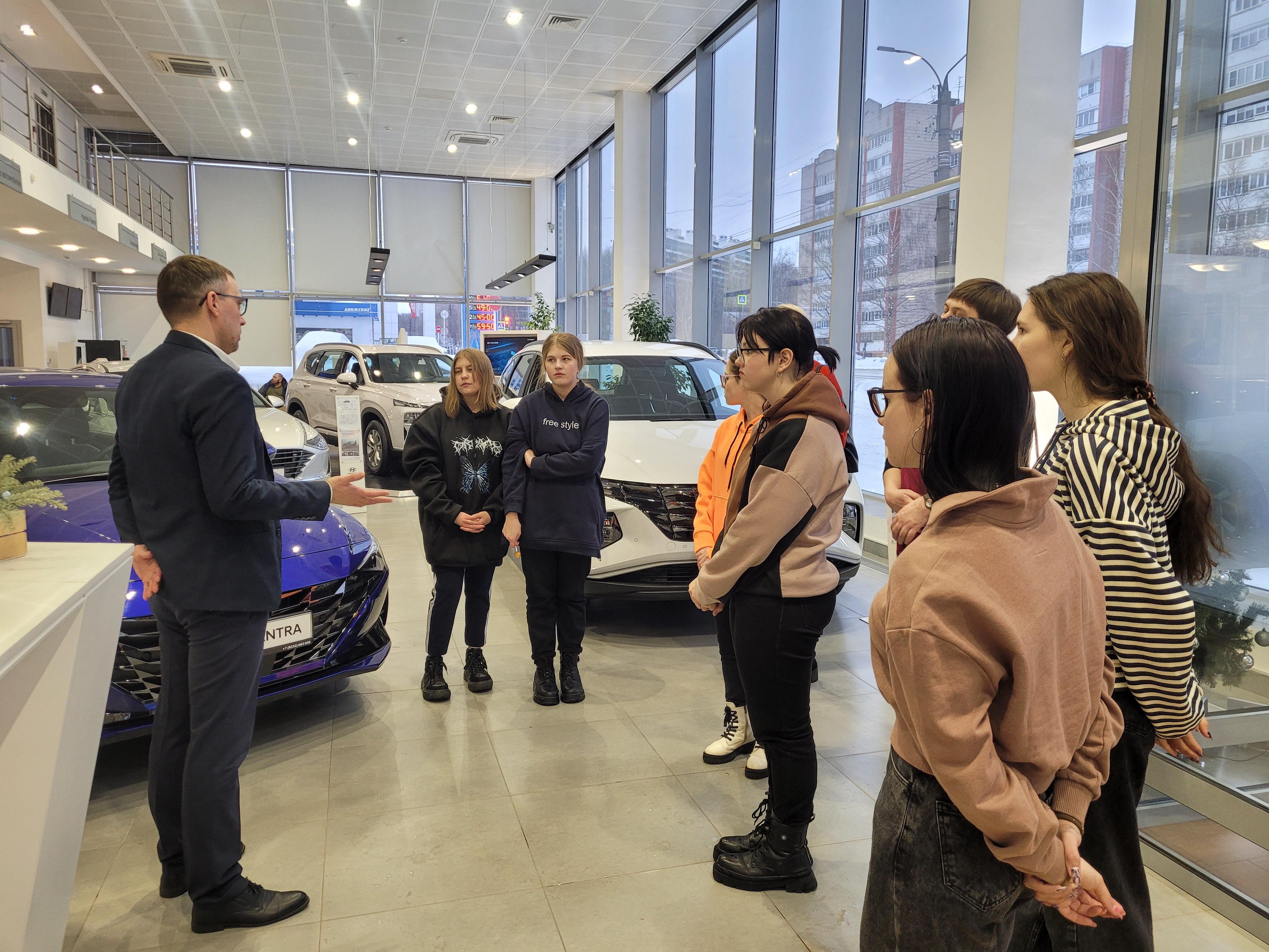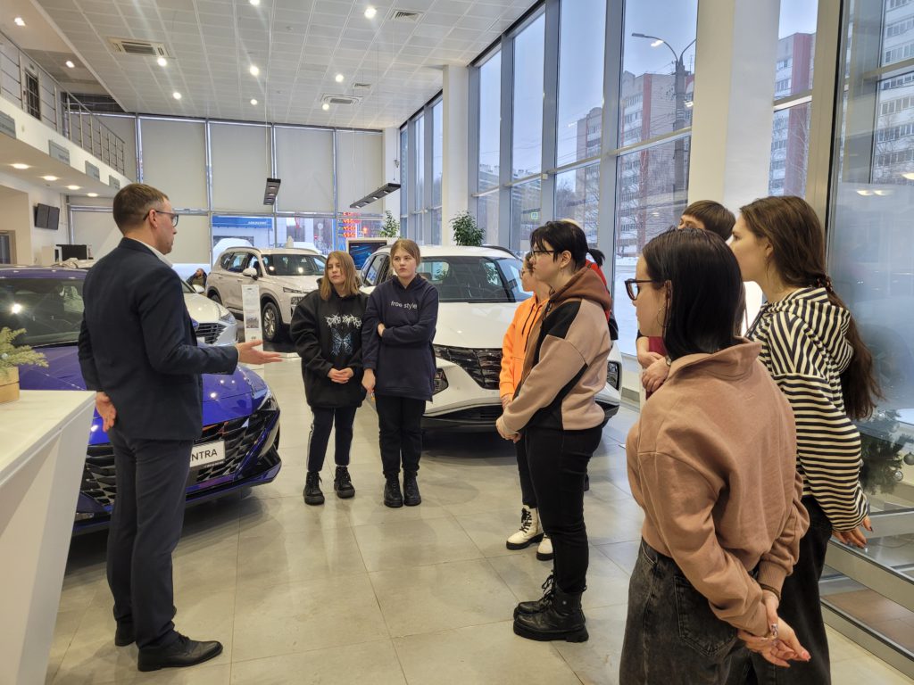 Якимова Вероника Сергеевна, маркетолог автосалона «Hyundai», рассказала участницам экскурсии об объемах продаж салона и ценовой политике.