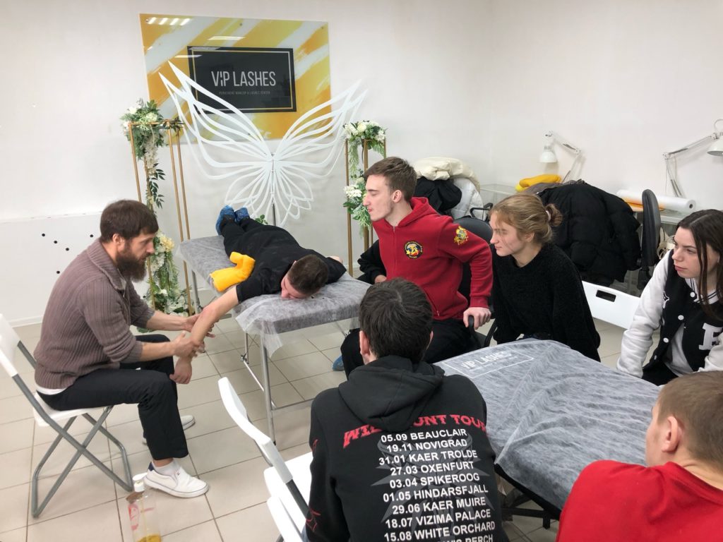 Мастер-класс проводил профессиональный массажист Евгений, который рассказал о пользе массажа для здоровья, об основных правилах, с чего начинать и ещё много интересного о своем любимом деле. Показал технику проведения массажа рук, после чего ребятам предоставили возможность освоить эту технику друг на друге.