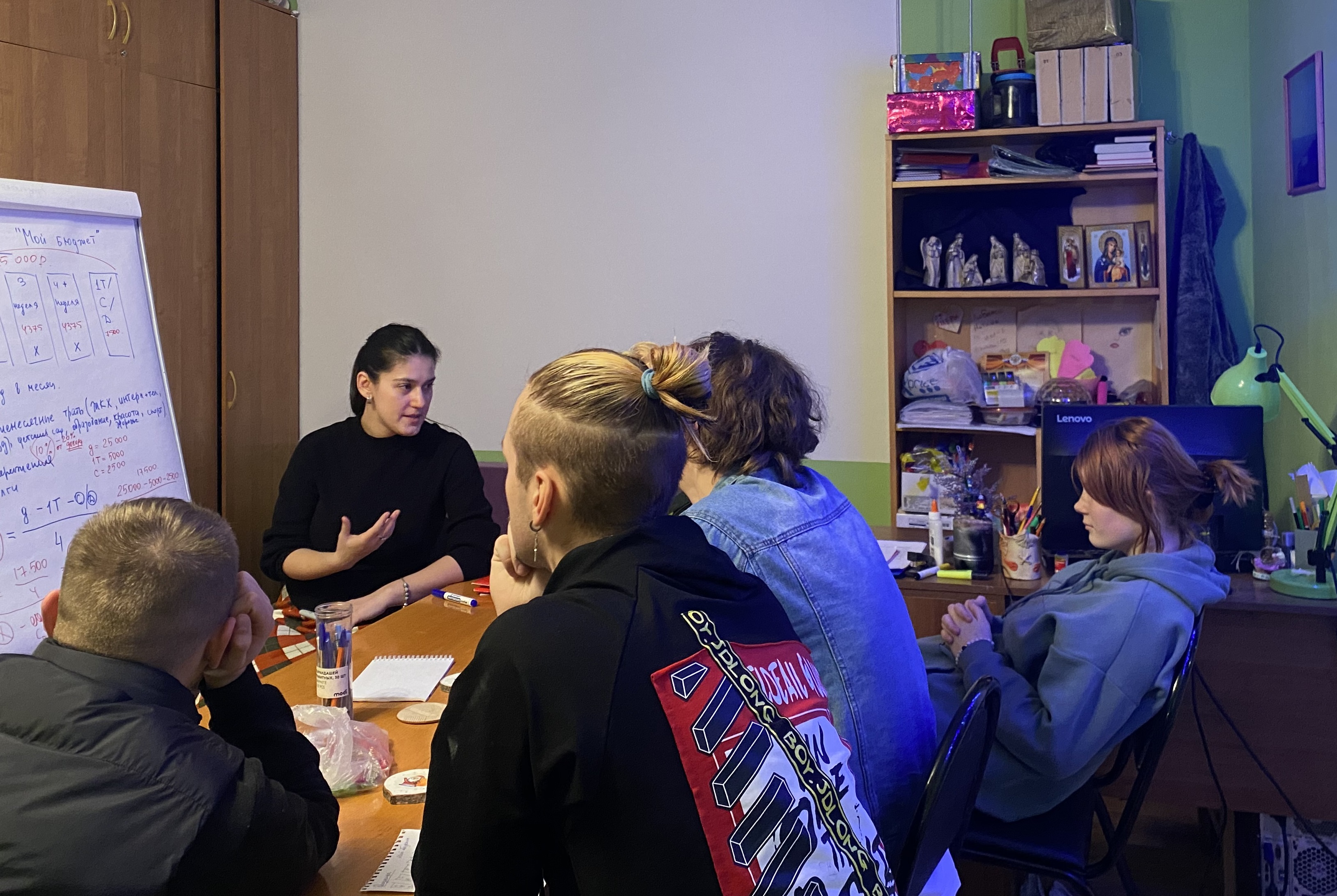 В декабре и январе для участников в Костроме мы провели курс по бытовой финансовой грамотности «Мои деньги». Курс простой, но очень важный и состоит из трех занятий раз в неделю. Вместе ребята работали в малых группах, выполняли упражнения по постановке целей, делали расчеты своего бюджета по формуле, а в конце всех ждал розыгрыш вкусных призов.