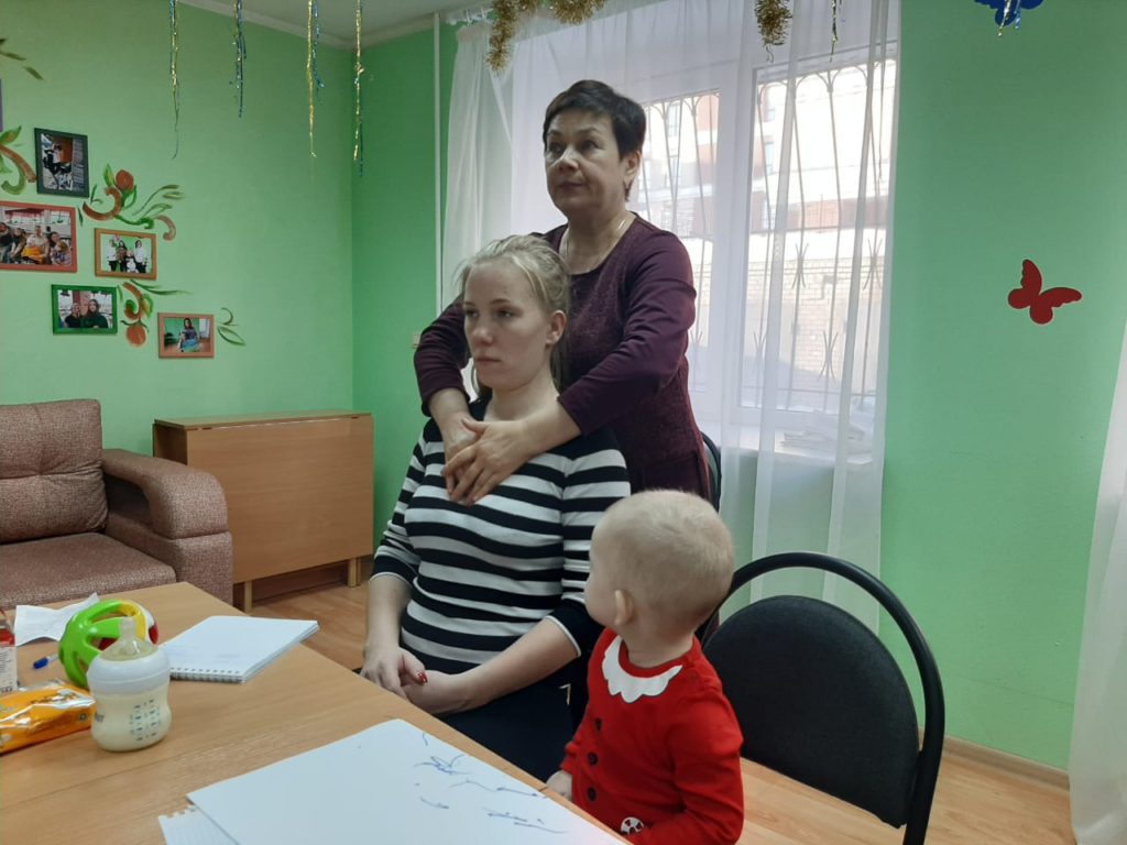 ценно в этой встрече было то, что Надежда Львовна не только дала теоретические знания, но и показала на участницах встречи практические приёмы массажа и самомассажа и ответила на конкретные вопросы мам о своих детях.